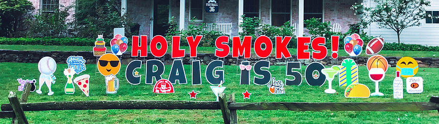 Choose from one of our thematic birthday slogans and designs. Options include: All signs include one name and age; and can be customized to include personal interests. Includes set-up and removal. Additional name can be added for $25 each.